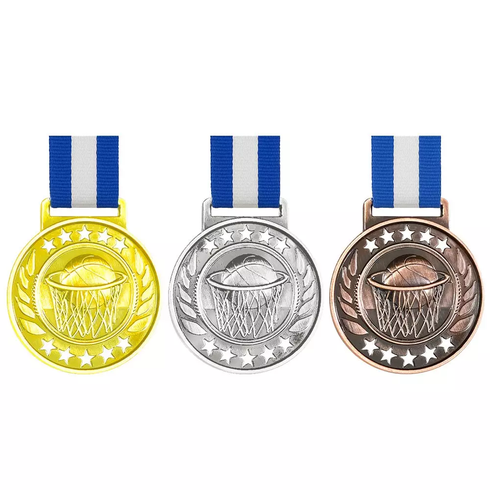 מדליה כדורסל עם כוכבים חלולים לאלופים ✔ מדליה מתכתית ✔ קיימת בשלושה צבעים - זהב, כסף, ארד. ✔ אוזן מלבנית עם סרט כחול לבן תפור ✔ שטח למיתוג בגב המדליה