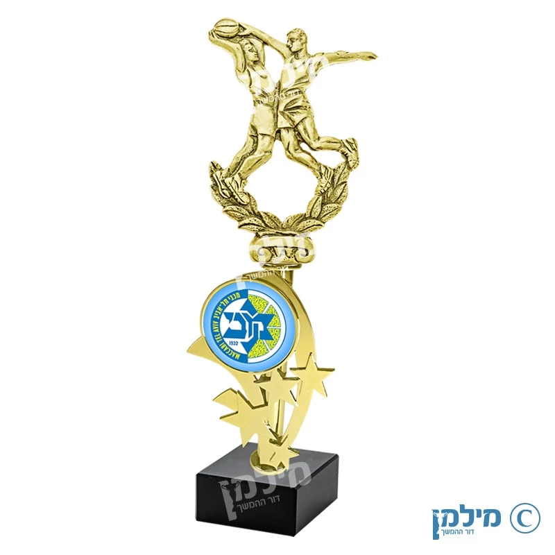 פסלון כדורסל על הגבהת עם מקום ללוגו . רוצה לייצר פסלון אישי משלכם? למילמן דור ההמשך יש את המפעל המודרני והמתקדם בארץ ובעולם לייצור גביעים ופרסי הוקרה בעיצוב אישי