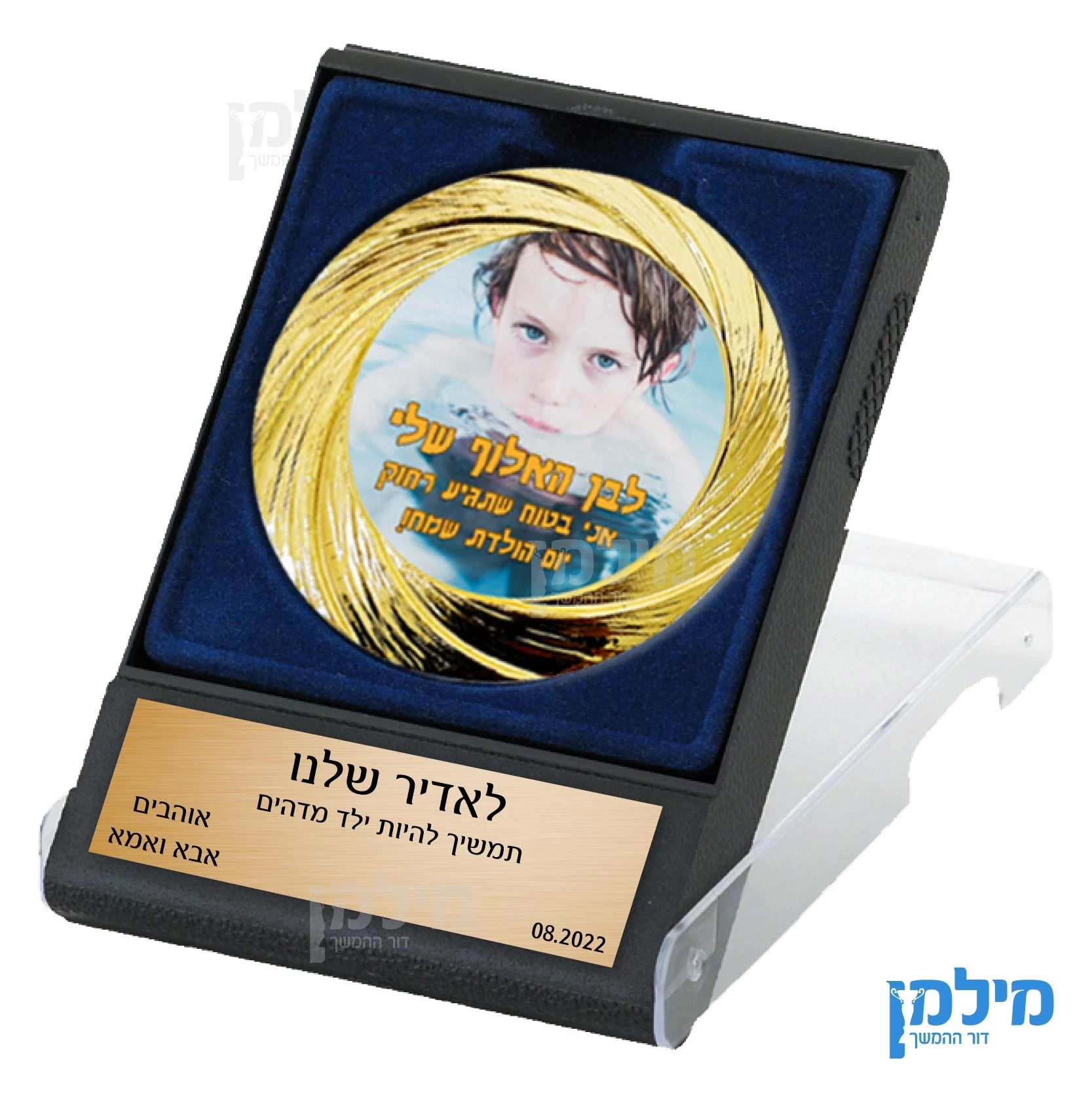 מטבע היומלדת שלנו בקופסא כחולה הוא המתנה המושלמת לכל חגיגה. עשוי מחומרים איכותיים, ניתן להתאים אישית לכל אירוע, ומביא עימו מגע של יוקרה וייחודיות.