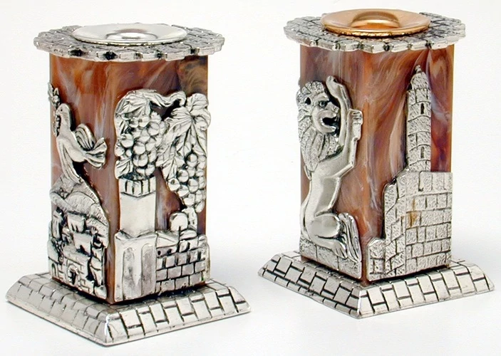 פמוטים לנרות חום בעיצוב העיר העתיקה ירושלים ענבים ואריה