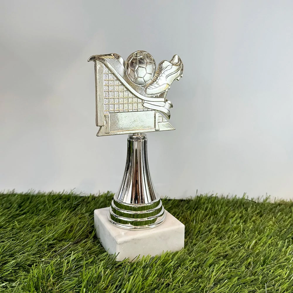 גביע כדורגל מדגם ריאל מדרידפסלון מתכתי ממתכת מהודר עם הבלטת תלת מימד ואפשרות כפולה ללוגו וטקסט, גם על הפסלון וגם על הבסיס שיש
