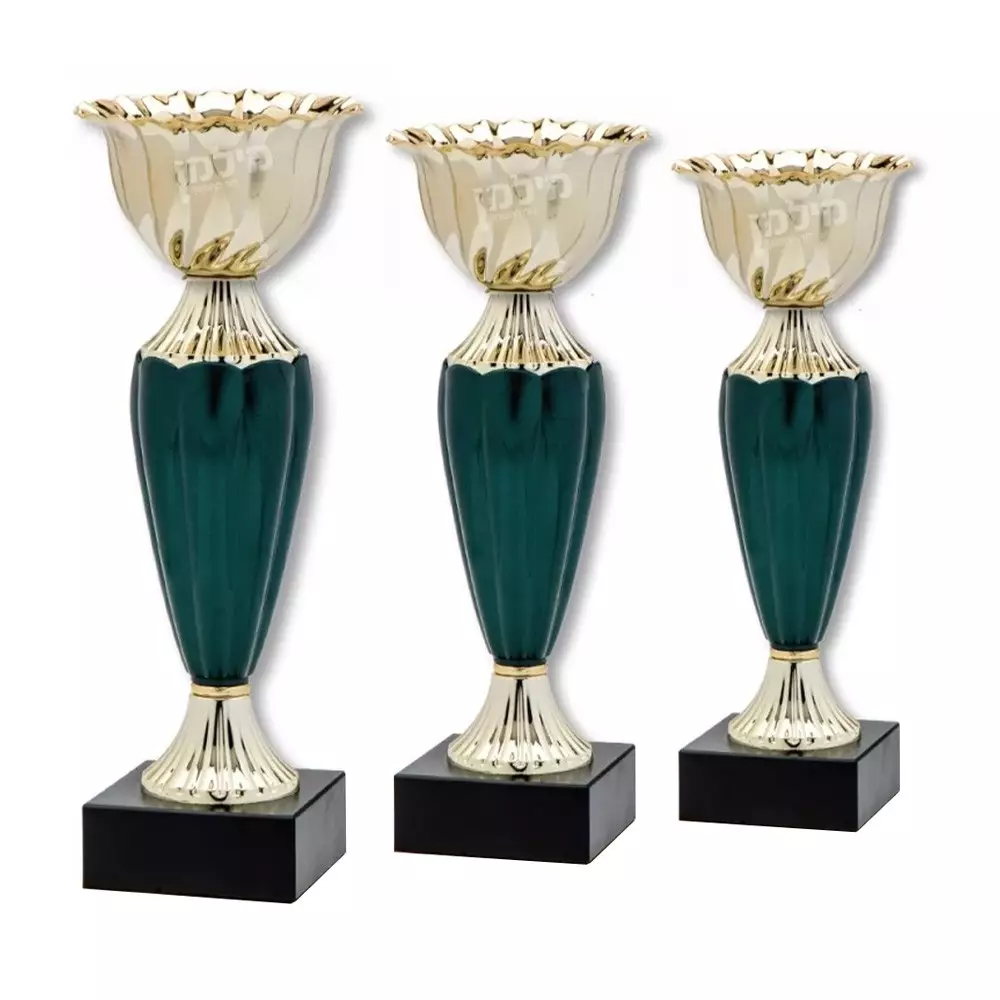 גביע קרנבל ירוק בקבוק – גביע צבעוני ומפואר לתחרויות ואירועים ✔ בסיס שיש איטלקי ✔ המחיר כולל לוחית הקדשה ✔ כוס מתכת מהודרת עם ידיות - תוצרת איטליה ✔ הגבהה ירוק בקבוק + אופציה למיתוג על ההגבהה ✔ מגיע בשלושה גדלים