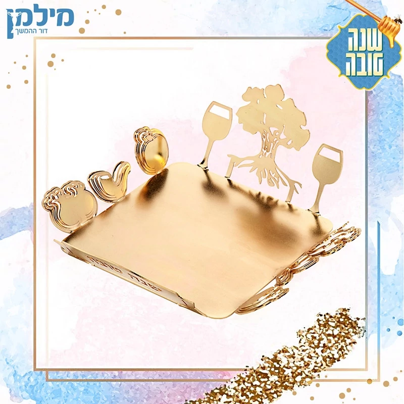 מתנה ייחודית - מגש מתכתי מהודר בצורת "מניפה" עשוי מארבע שכבות בציפוי זהב יוקרתי ומקום לצנצנת דבש גדולה של 100 גרם. המתנה מגיעה עטופה באריזת צלופן עם שוקולדים. על המגש ניתן למתג את הלוגו האישי שלך שכמובן אנחנו נעצב זאת עבורך! מוטב לציין שמתנה זו יוצרה במסגרת קולקציה ייחודית שפותחה בתקופת משבר הקורונה אשר פקדה גם את חברתנו דבר שנתן לצוות שלנו תמריץ להיכנס ולהיפתח לתחומים חדשים. מילמן דור ההמשך למעלה מחמישים שנה של עשייה ייחודית תוצרת כחול לבן!