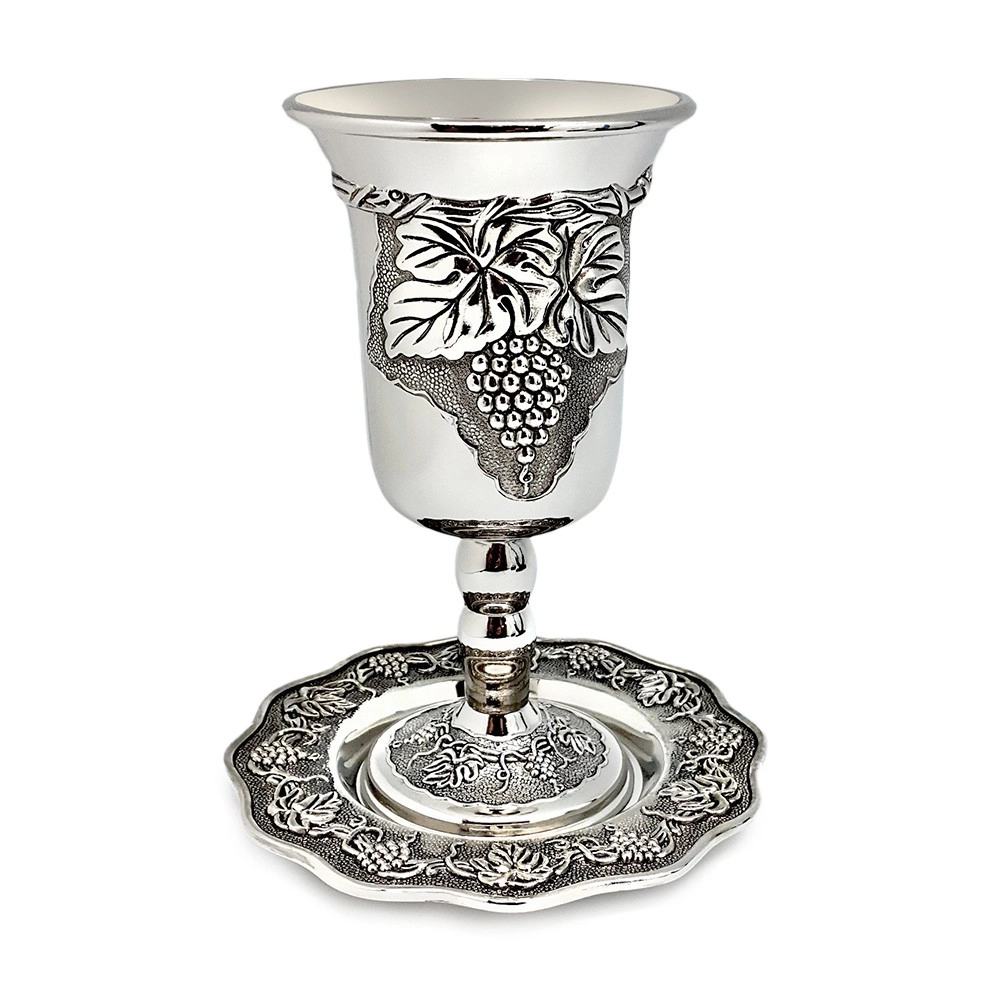 כוס קידוש בציפוי כסף היא פריט אומנותי ומהווה חלק בלתי נפרד ממנהגי היהדות. הכוס מעוצבת עם ריקוע של אשכול ענבים וכן עשויה ממתכת בציפוי כסף, גובה הכוס כ-17 ס"מ עם תחתית שעליה ניתן לחרוט עד שני משפטים.