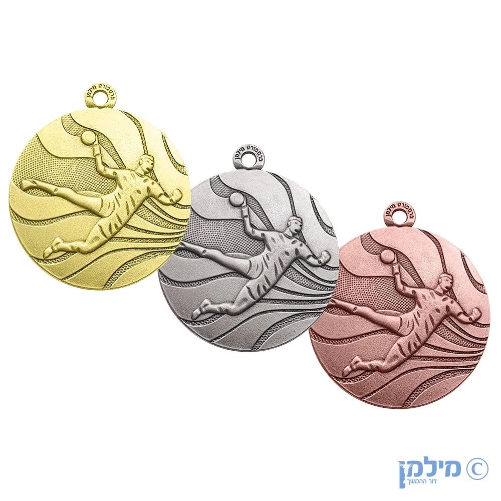 מדליית כדוריד שמוטבעת עם דמות של שחקן שעולה לזריקה לשער ✔ הבלטת תלת מימד ✔ מגיע בשלושה צבעים: זהב, כסף וארד ✔ מדליה מתכתית איכותית, תוצרת ישראלית כחול לבן! ✔ מגיע עם סרט בעובי 2.2 ס"מ (מעל הסטנדרט המקובל בשוק) וקליפס מתכתי ✔ ניתן להוסיף לוגו/טקסט בגב המדליה