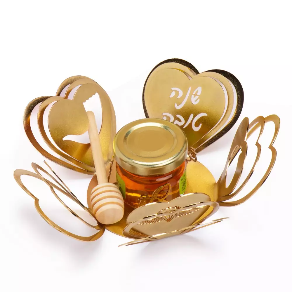 מתנה ייחודית - מעמד מתכתי "מניפה" בצורת פרח עשוי מארבע שכבות בציפוי זהב יוקרתי ומקום לצנצנת דבש גדולה של 100 גרם. המתנה מגיעה עטופה באריזת צלופן עם שוקולדים. את המעמד והצנצנת דבש ניתן למתג עם לוגו או הקדשה אישית משלך שכמובן אנחנו נעצב זאת עבורך ובשיתוף פעולה! מוטב לציין שמתנה זו יוצרה במסגרת קולקציה ייחודית שפותחה בתקופת משבר הקורונה אשר פקדה גם את חברתנו דבר שנתן לצוות שלנו תמריץ להיכנס ולהיפתח לתחומים חדשים. מילמן דור ההמשך למעלה מחמישים שנה של עשייה ייחודית תוצרת כחול לבן!