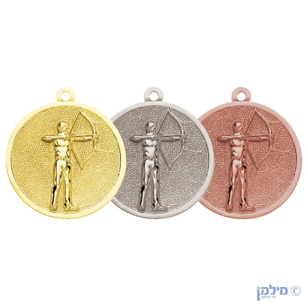 מדליה "חץ וקשת" מוטבעת תלת מימד בקוטר 6 ס"מ