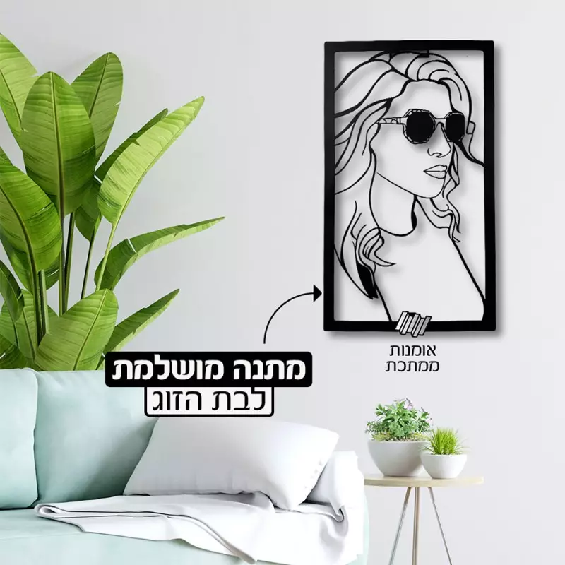 מתנה מקורית לבת הזוג תמונת פרוטרט ממתכת בהתאמה אישית. אנחנו מזמינים אותך להפתיע את הבת זוג שלך במתנה מושלמת, כזו שתישאר איתה למשך שנים ארוכות. מקוריות זה שם המשחק בחיים ואנחנו מבטיחים לך שברגע שהבת זוג שלך תפתח את המתנה אין סיכוי שהיא לא תגיד ואו! ✅ מצוייר על ידי אמנית בעלת ותק של 10 שנים ✅ לא מפיקים ללא אישור הגהה ✅ מתכת אל חלד - איכות חיים ללא הגבלה ✅ ניתן להוסיף טקסט אישי באמצעות לוחית מודבקת ממתכת * המחיר המוצע הינו לאיור של דמות אחת. 260 ש"ח תוספת לכל דמות נוספת