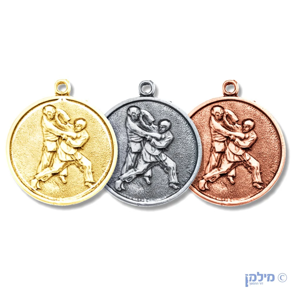 מדליה מוטבעת עם לוחמי ג'ודו העשויה ביציקת מתכת ✔ הבלטת תלת מימד ✔ מגיע בשלושה צבעים: זהב, כסף וארד ✔ מדליה מתכתית איכותית, תוצרת ישראלית כחול לבן! ✔ מגיע עם סרט בעובי 2.2 ס"מ (מעל הסטנדרט המקובל בשוק) וקליפס מתכתי ✔ ניתן להוסיף לוגו/טקסט בגב המדליה