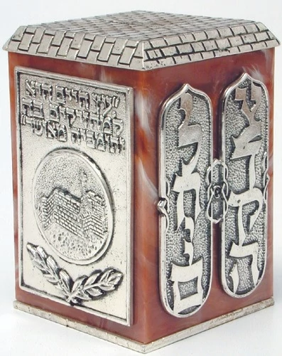 119קופת צדקה קופת חסכון בצבע אדום כהה עם הכיתוב "צדקה לחיים" בצד אחד והפסוק "עץ החיים היא למחזיקים בה ותומכיה...". מתחת ל"עץ החיים" יש עיצוב של מטבע עם חומות העיר ירושלים ומגדל דוד ומתחת לזה עיצוב עלי זית. הכיתוב והכיסוי עשויים מממתכת זמק ומצופה בכסף סטרלינג 925. אנו קיימים מעל 50 שנה ומייצרים את כל המוצרים שלנו בעצמנו ובזמן המהיר ביותר וכל זאת תוך שמירה על הסטנדרטים הגבוהים והבלתי מתפשרים ביותר. בנוסף, אנחנו היצרנים האכותיים ביותר של מוצרי יודאיקה והוקרה נוספים ומעסיקים את המקצוענים המובילים בתחומם מהארץ והעולם.