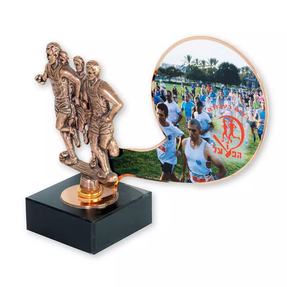 פסלון ריצה עם אלמנט אומנותי ✔ מעמד מתכת צורני עם הדפס דיגיטלי ✔ פסלון עם הבלטת תלת מימד ממתכת ✔ בסיס שיש איטלקי ✔ המחיר כולל הקדשה אישית ממתכת! ✔ שטח גדול למיתוג תמונה או לוגו ספונסרים וכו