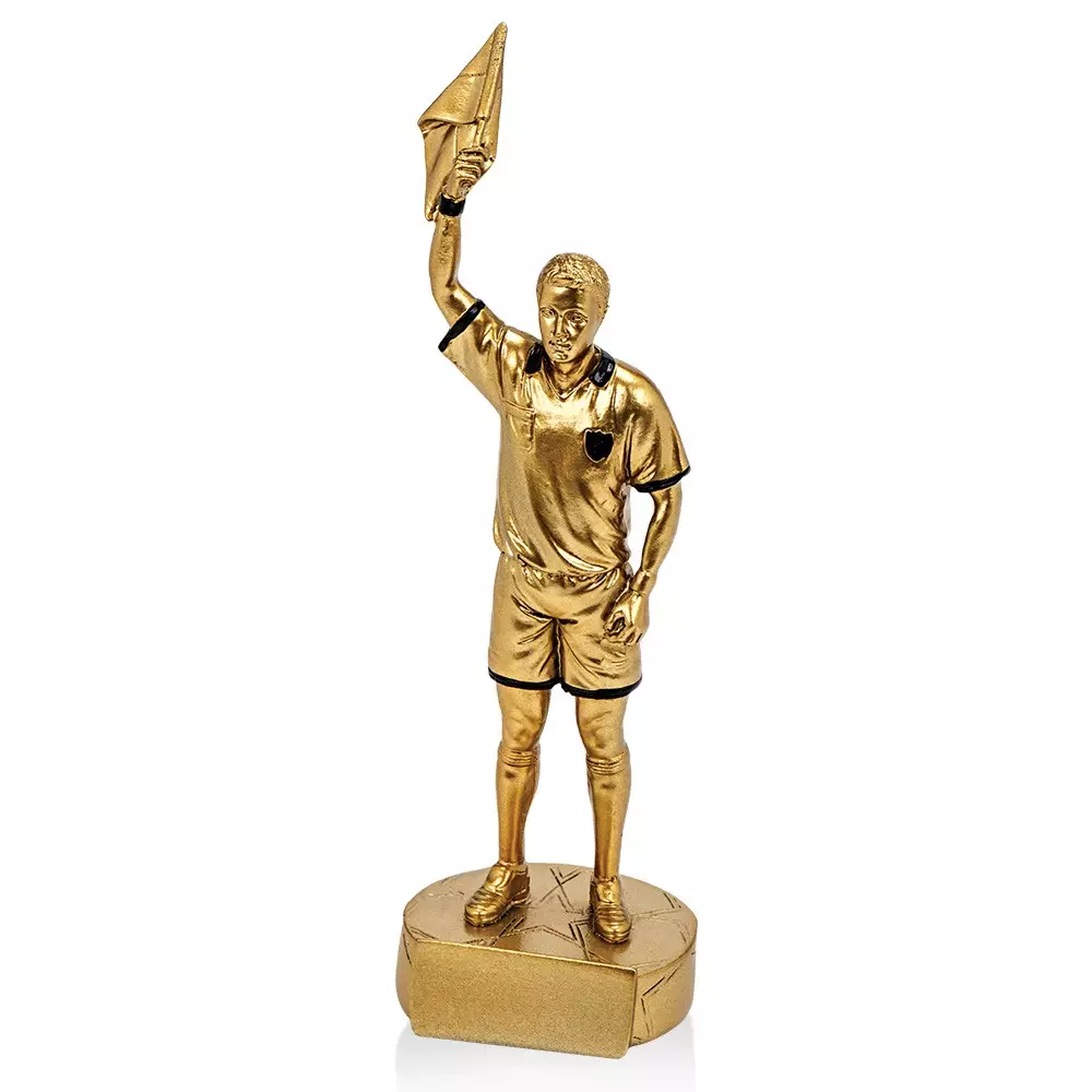 גביע פסלון שמראה שופט כדורגל מרים דגל. הגביע עשוי מרזין ומצופה זהב, וגובהו 17 ס"מ.