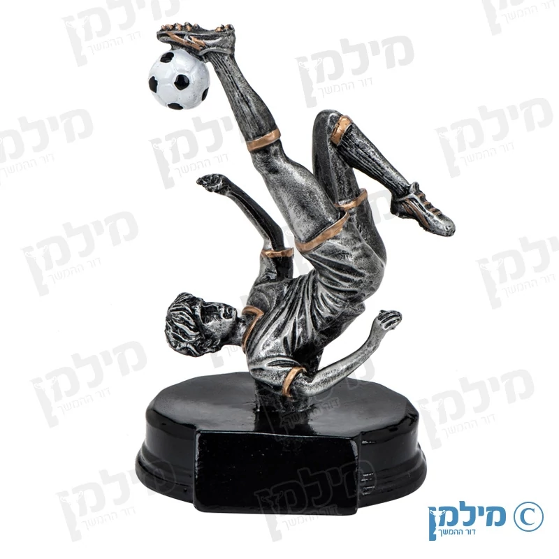 כביע פסלון כדורגל שחקן מצטיין שמראה שחקן עושה מספרת. הכביע עשוי מרזין ואורכו 17 ס"מ.