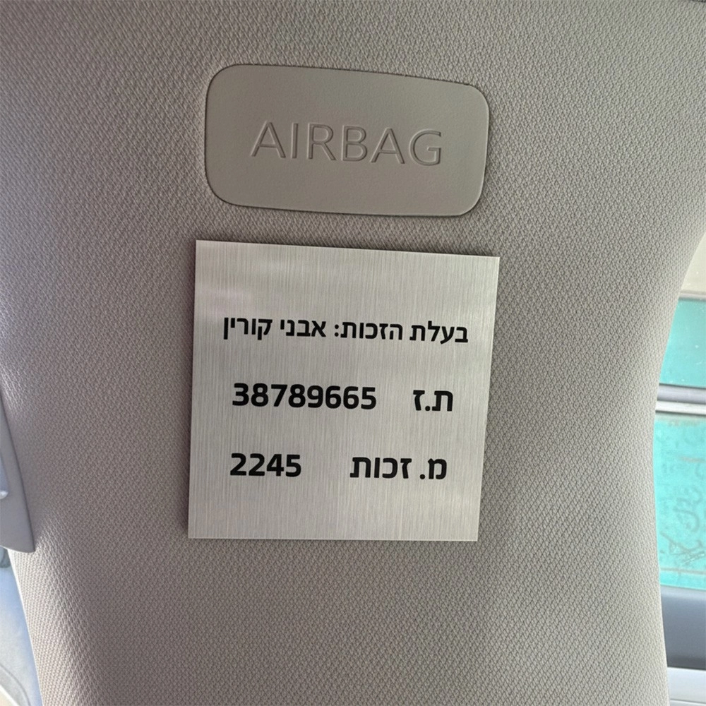 שלט מתכת יוקרתי ומודרני למונית ✔ הקדשה אישית ✔ הדפס דיגיטלי איכותי ✔ כולל דבק דו"צ ✔ במגוון גדלים - עד 10 ס"מ רוחב ואורך