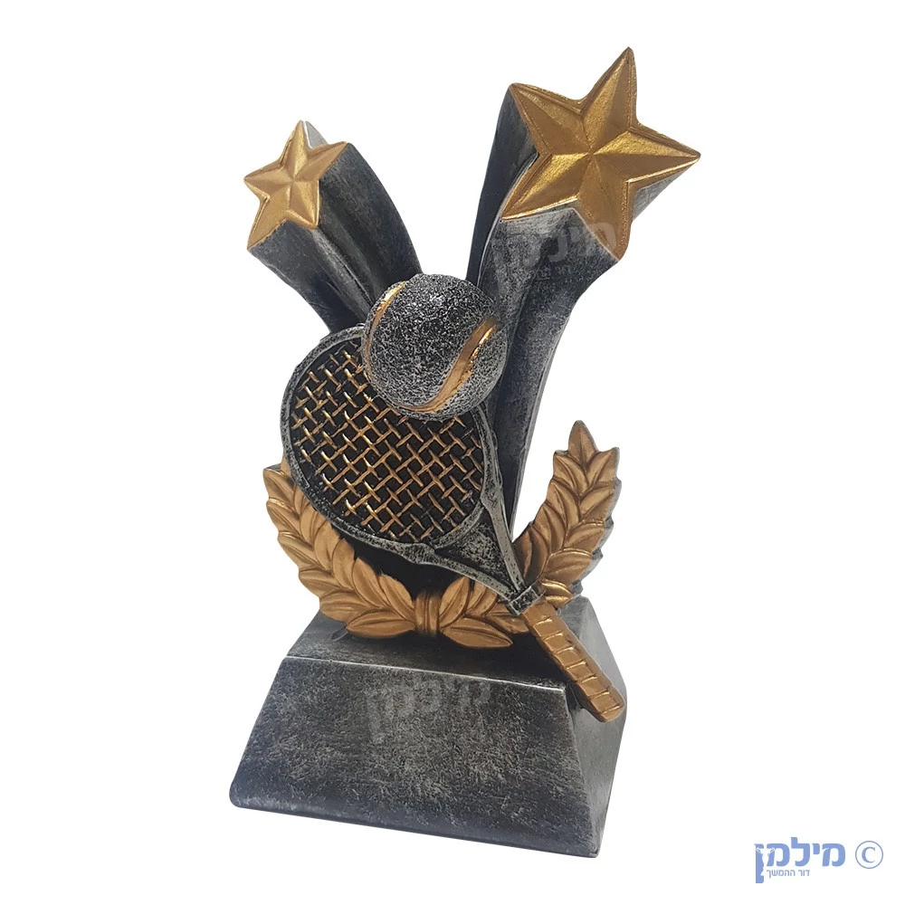 גביע פסלון טניס מקצוענים מעוצב בצורת מטקה (רקטה) וכדור, וכתר עלי זית למטה. הגביע פסלון עשוי רזין - סגסוגת פוליאסטר, וגובהו 14 ס"מ. כמו כן, ניתן לצרף הקדשה אישית והוא מגיע באריזה אישית מקרטון. מילמן דור ההמשך קיימים מעל 50 שנה ומייצרת את כל המוצרים שלה בעצמה ובזמן המהיר ביותר וזאת תוך שמירה על הסטנדרטים הגבוהים והבלתי מתפשרים ביותר. בנוסף, אנחנו היצרנים האיכותיים ביותר של גביעים ופסלונים - מרזין, זכוכית וחומרים אחרים - בנוסף למוצרי הוקרה נוספים כגון מדליות, מגיני הוקרה (וכו') ומעסיקים את המקצוענים המובילים בתחומם מהארץ והעולם.
