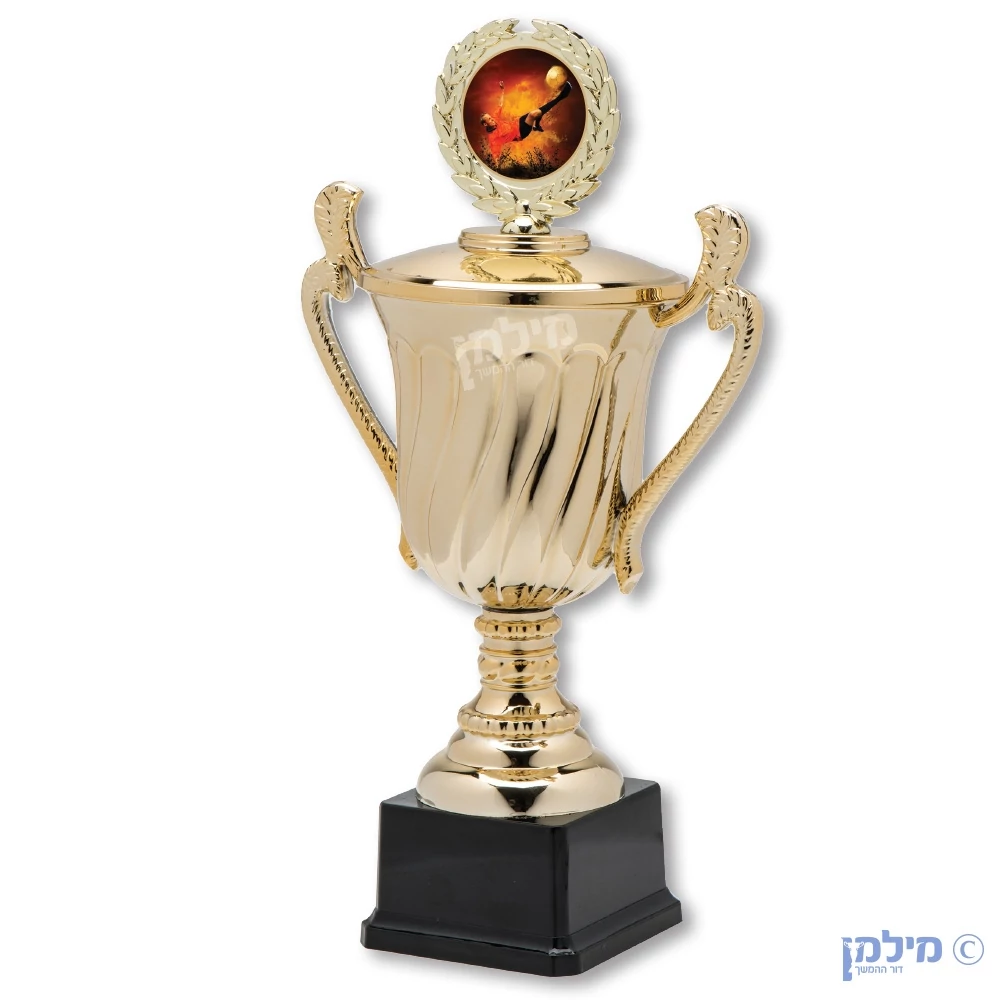 גביע פרסטיג' – גביע זהב יוקרתי עם עיטור עליון | מתאים להקדשות ותחרויות ✔ גביע לטקסים והוקרה/תחרויות ספורט ✔ שטח גדול להקדשה אישית עם אופציה לתמונה/לוגו ✔ מראה יוקרתי מרשים ✔ בסיס גדול ויציב