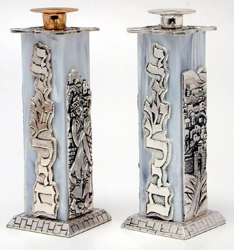 פמוטים לנרות בצבע לבן ירושלים "שבת קדש"