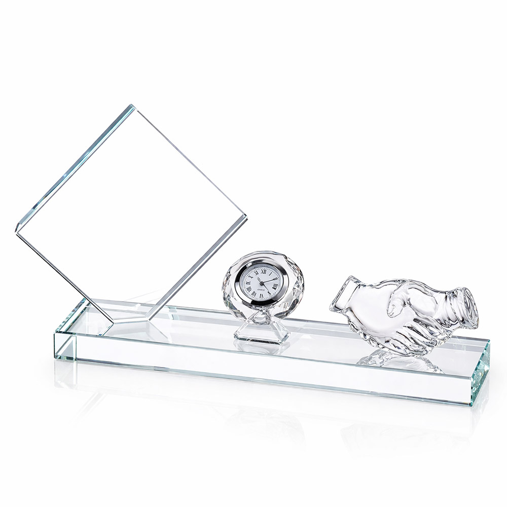 מעמד זכוכית מהודר במיוחד עם שעון ויד לוחצת יד מקריסטל