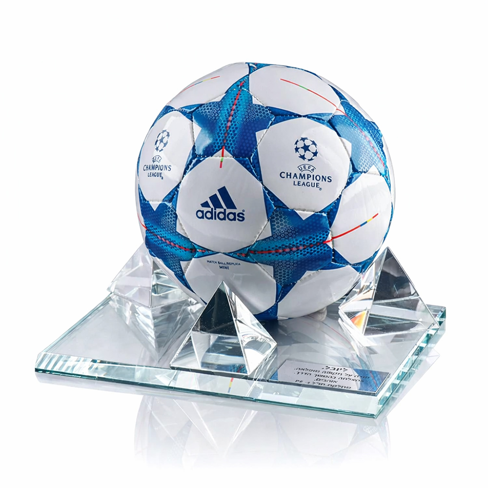 <p>מעמד זכוכית קריסטל מהודר לכדור מידה 3. הכדור להמחשה בלבד! ניתן להוסיף למעמד לוחית הקדשה עם שם ולוגו</p>