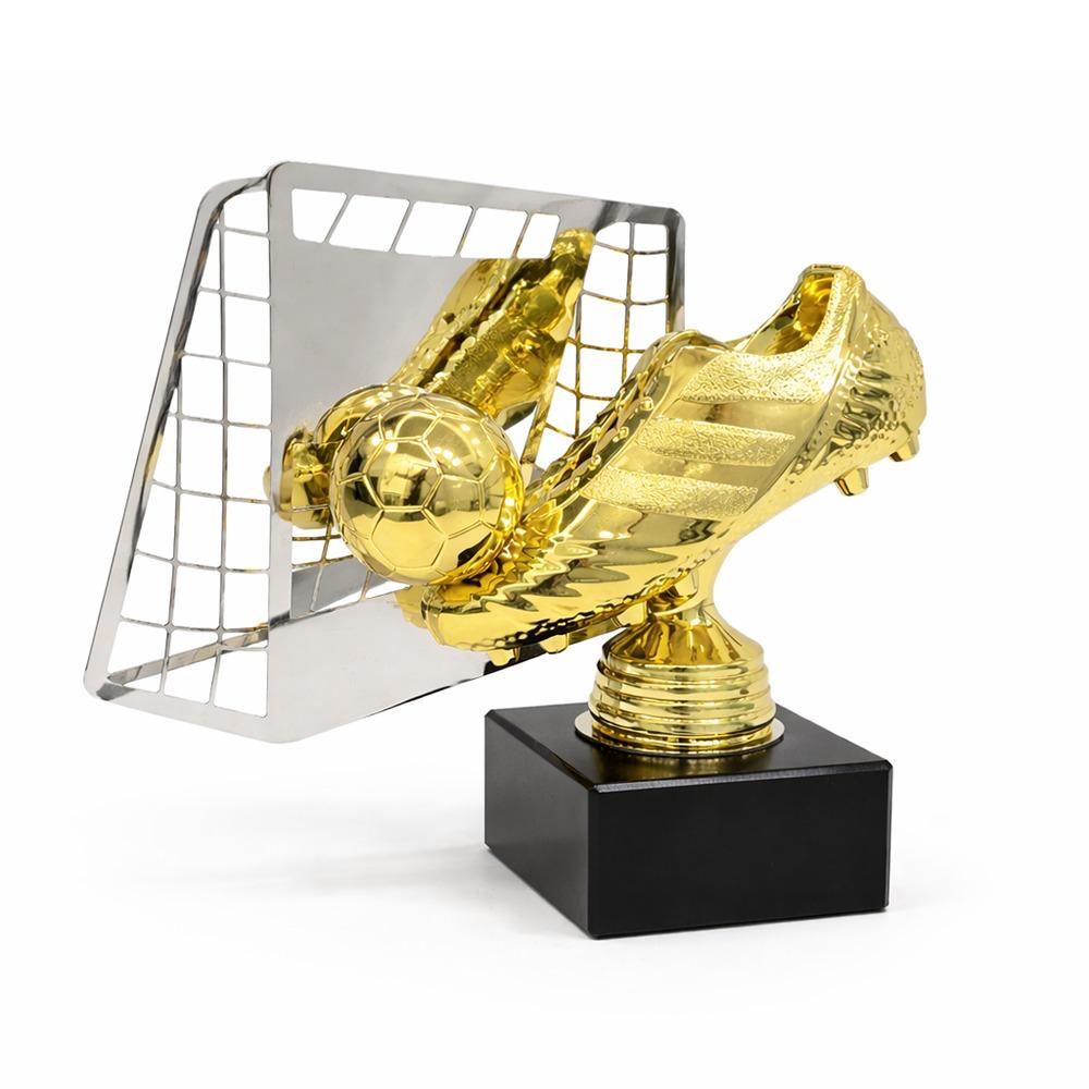 פסלון גביע כדור כדורגל ושער רשת מתכתית